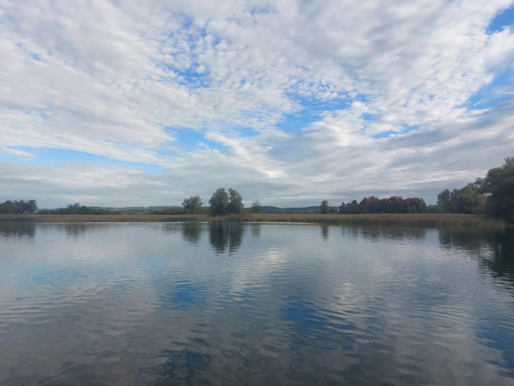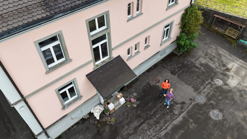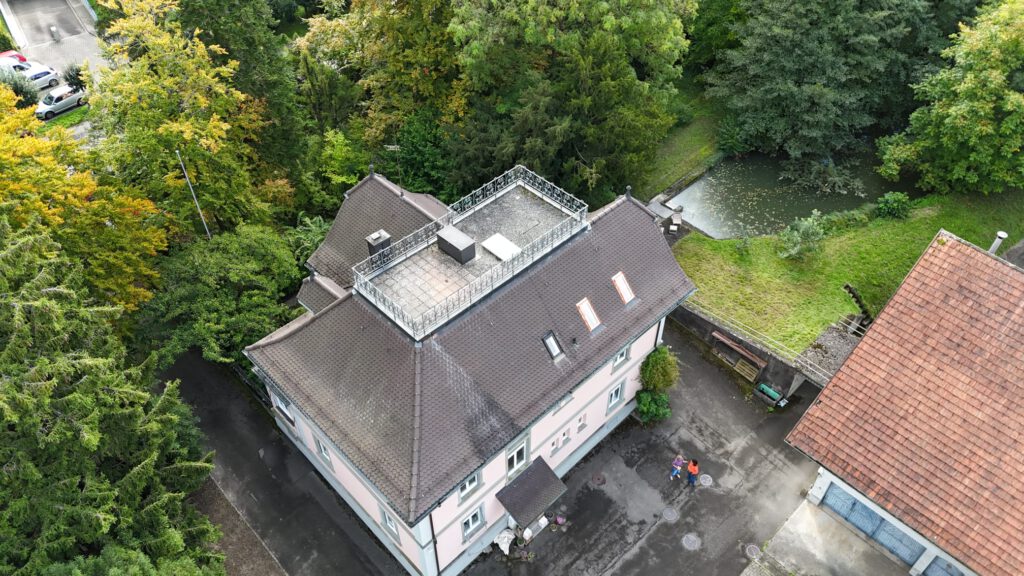 Nach einer schönen Hunderunde mit Hunter und Finja – die sich übrigens bestens verstehen, indem sie sich freundlich ignorieren – und einem Kaffee in Sandras Dorfladen hat Michi noch schnell ein paar Drohnenaufnahmen von Karins wunderschönem Haus gemacht. Dann sind wir zur Fähre nach Konstanz aufgebrochen.